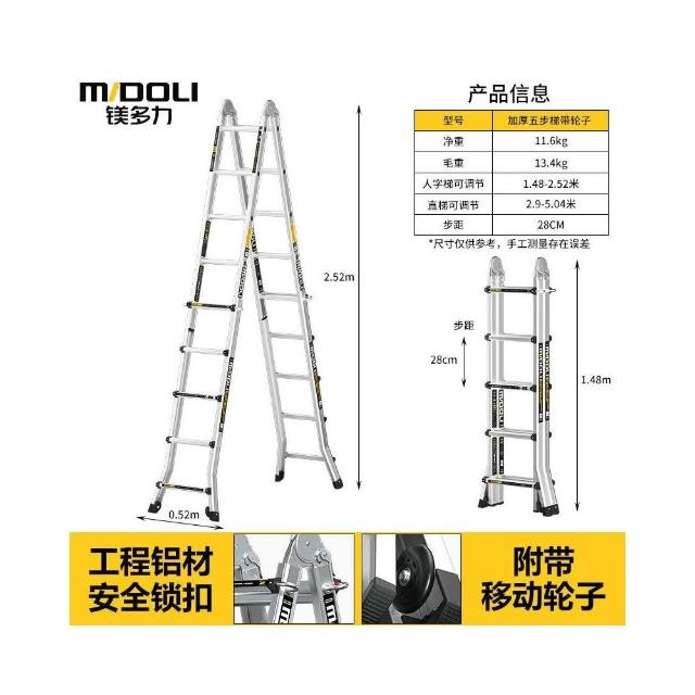 鎂多力伸縮梯子特厚家用多功能兩用樓梯加厚鋁合金折疊小巨人字梯