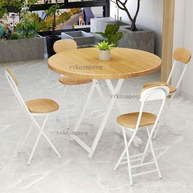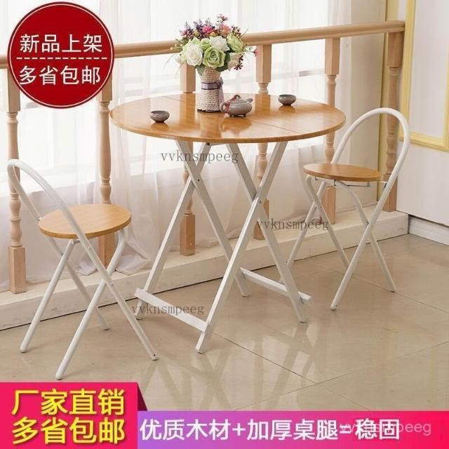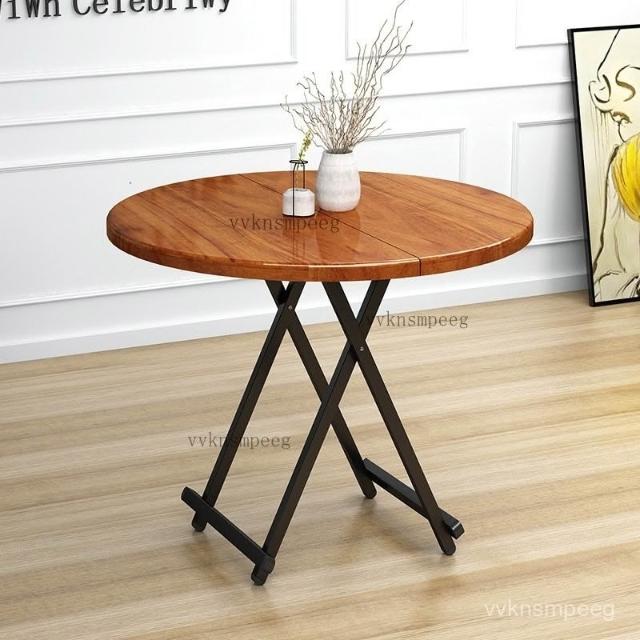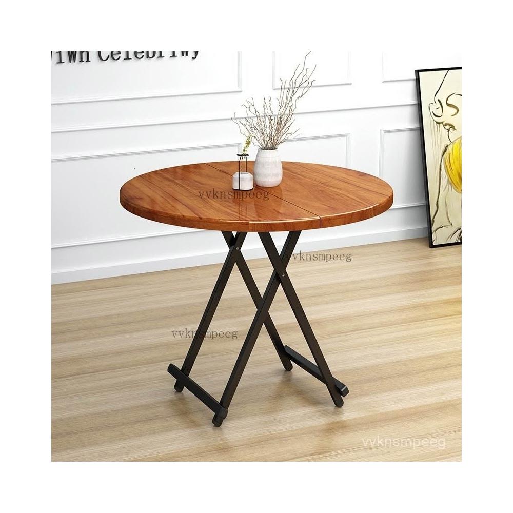 開發票 廠家直銷 【1680次迴購家用折疊桌便攜簡易喫飯桌子現代簡約圓桌歐式小戶型圓形實木餐桌