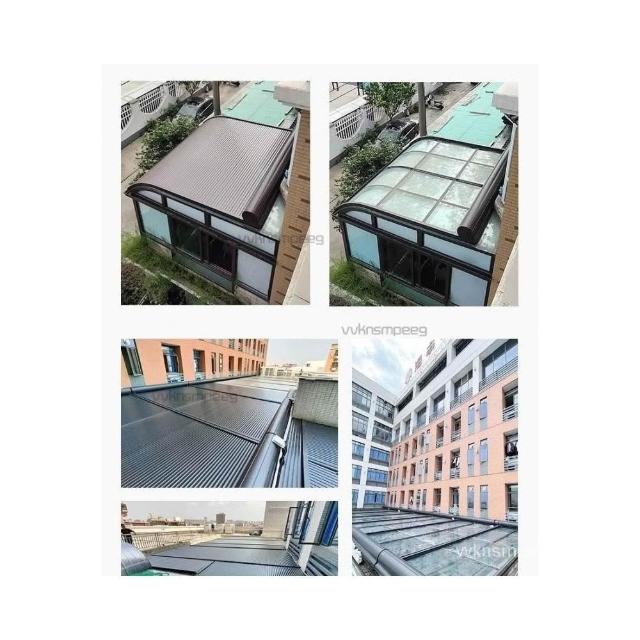 陽光房電動遮陽棚 鋁閤金天幕 戶外玻璃頂麵防曬隔熱自動伸縮防水雨 遮陽棚伸縮隔熱防曬頂簾 遮陽棚