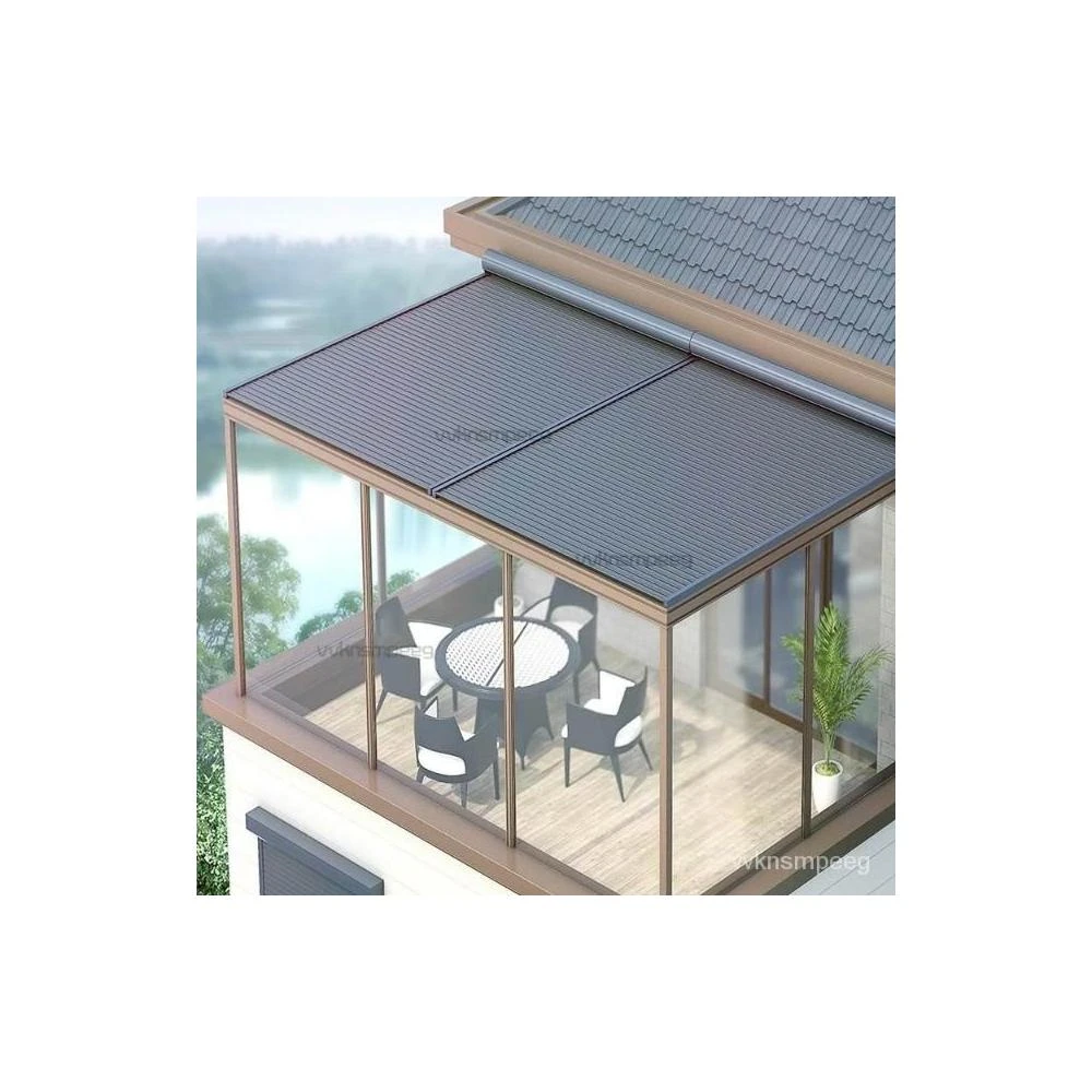 陽光房電動遮陽棚 鋁閤金天幕 戶外玻璃頂麵防曬隔熱自動伸縮防水雨 遮陽棚伸縮隔熱防曬頂簾 遮陽棚