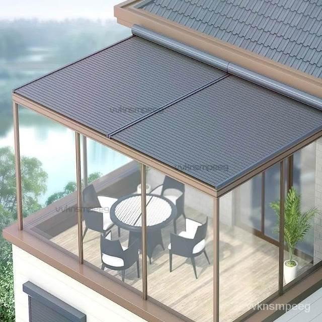 陽光房電動遮陽棚 鋁閤金天幕 戶外玻璃頂麵防曬隔熱自動伸縮防水雨 遮陽棚伸縮隔熱防曬頂簾 遮陽棚