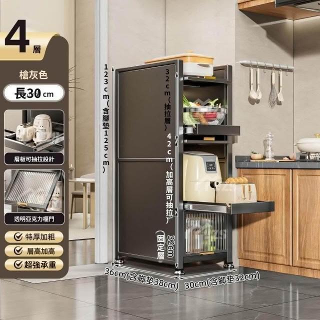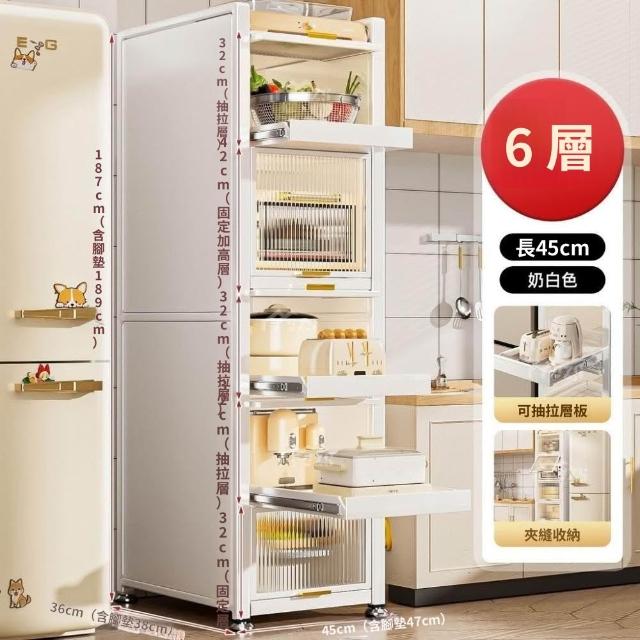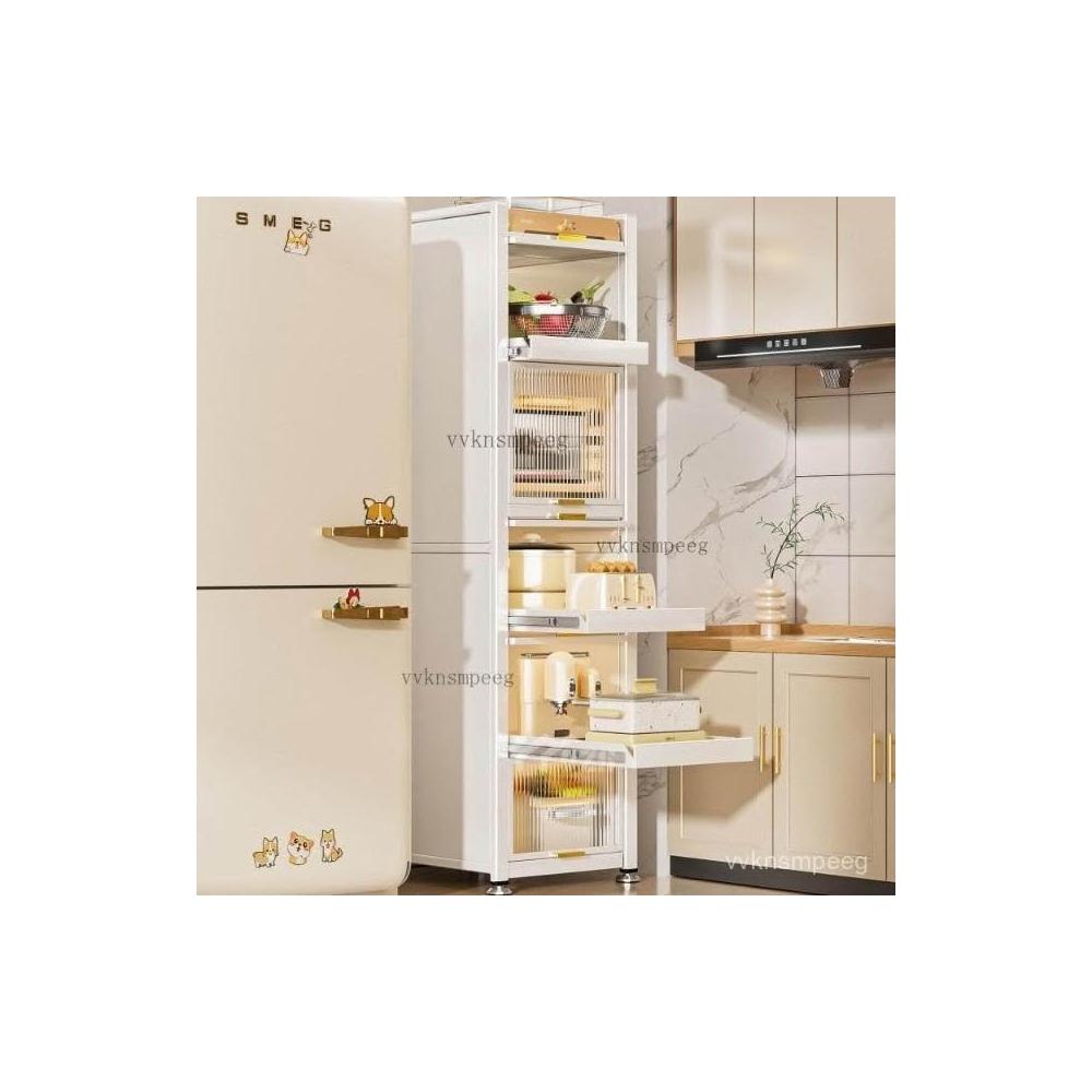 電器櫃抽拉式收納架 35cm/50cm白色抽拉置物架廚房置物架收納落地多層抽拉式儲物櫃多功能微波爐櫥櫃冰箱夾縫櫃