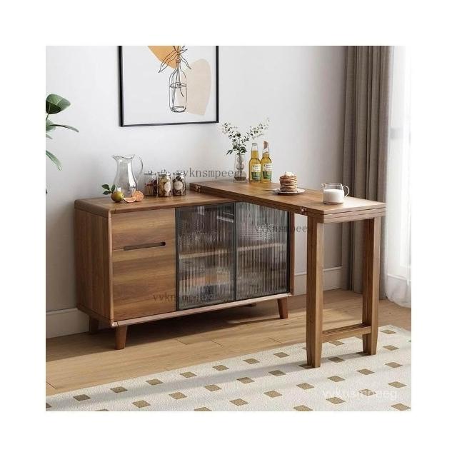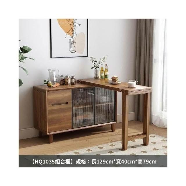 折疊餐桌 一體式餐邊櫃 日式折疊餐桌 小戶型收納櫃 可伸縮飯桌 一體中式折疊餐桌