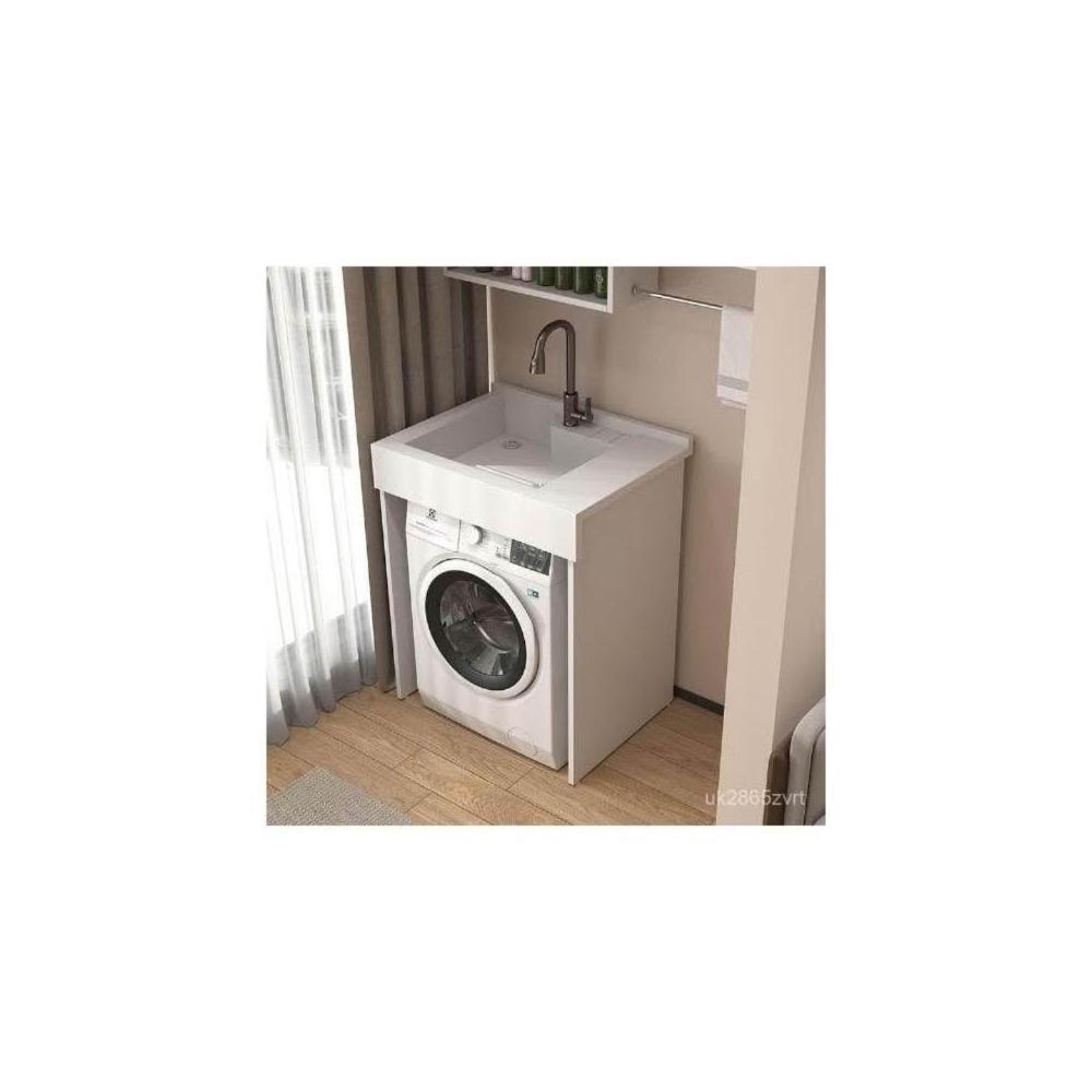 免運#小戶型陽臺洗衣櫃一體臺盆洗衣池槽帶搓 闆滾筒洗衣機櫃 伴侶組閤 洗手台 洗衣槽 滾筒洗衣機 陽台洗衣槽