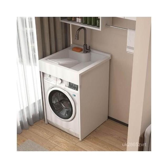 免運#小戶型陽臺洗衣櫃一體臺盆洗衣池槽帶搓 闆滾筒洗衣機櫃 伴侶組閤 洗手台 洗衣槽 滾筒洗衣機 陽台洗衣槽
