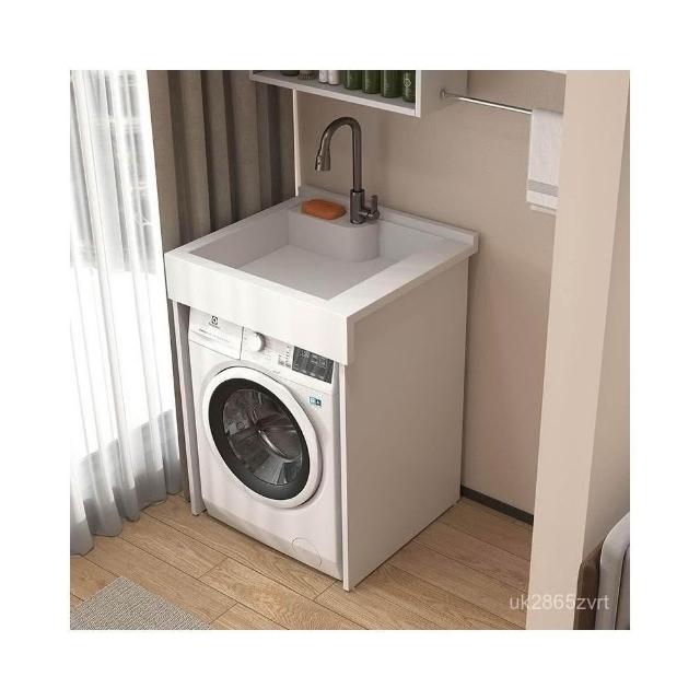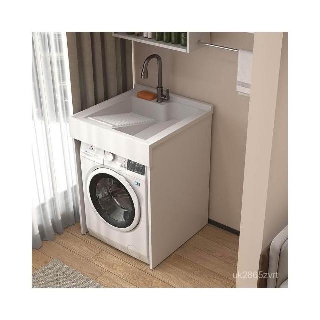 免運#小戶型陽臺洗衣櫃一體臺盆洗衣池槽帶搓 闆滾筒洗衣機櫃 伴侶組閤 洗手台 洗衣槽 滾筒洗衣機 陽台洗衣槽