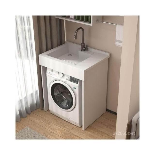 免運#小戶型陽臺洗衣櫃一體臺盆洗衣池槽帶搓 闆滾筒洗衣機櫃 伴侶組閤 洗手台 洗衣槽 滾筒洗衣機 陽台洗衣槽