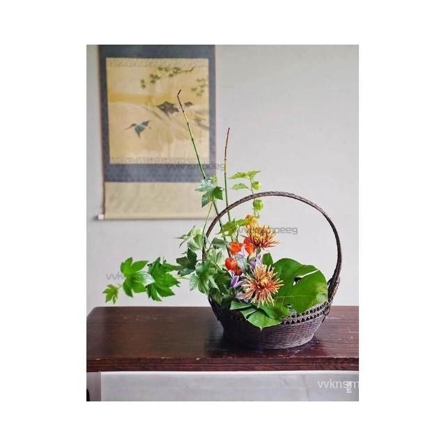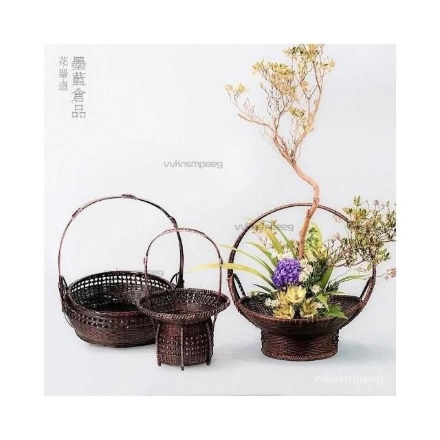 戶外野餐花籃 竹編收納竹籃 大竹籃 竹籐籃 插花劍山 花藝花器 中式插花器 傢居擺飾