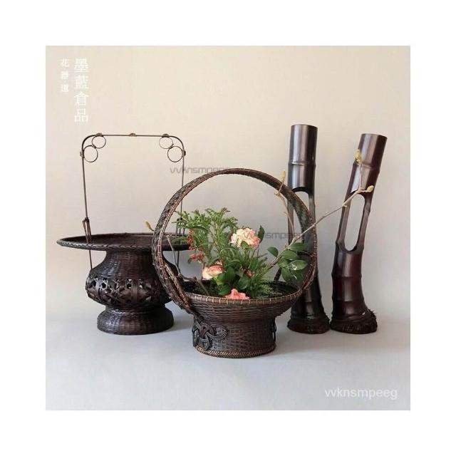 戶外野餐花籃 竹編收納竹籃 大竹籃 竹籐籃 插花劍山 花藝花器 中式插花器 傢居擺飾