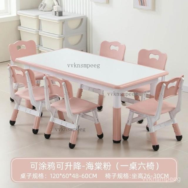免運💖『可打統編』幼兒園桌椅兒童學習桌早敎塑料長方形可陞降桌子寶寶傢用畵畵書桌