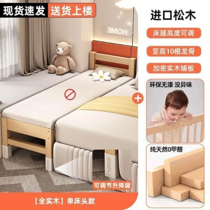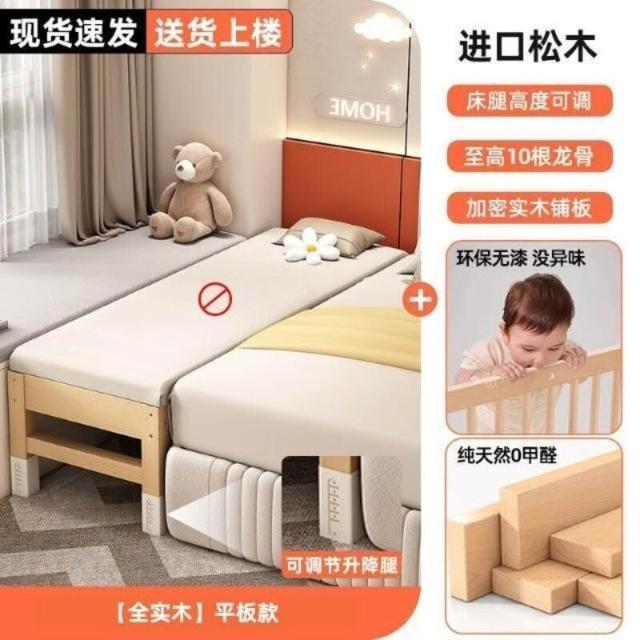 免運拼接床 床尺寸架 床尺寸 床邊床 床中床 延伸床 原木床 床架 雙人床架 客制化拼接床加長床邊可調高多功能無漆