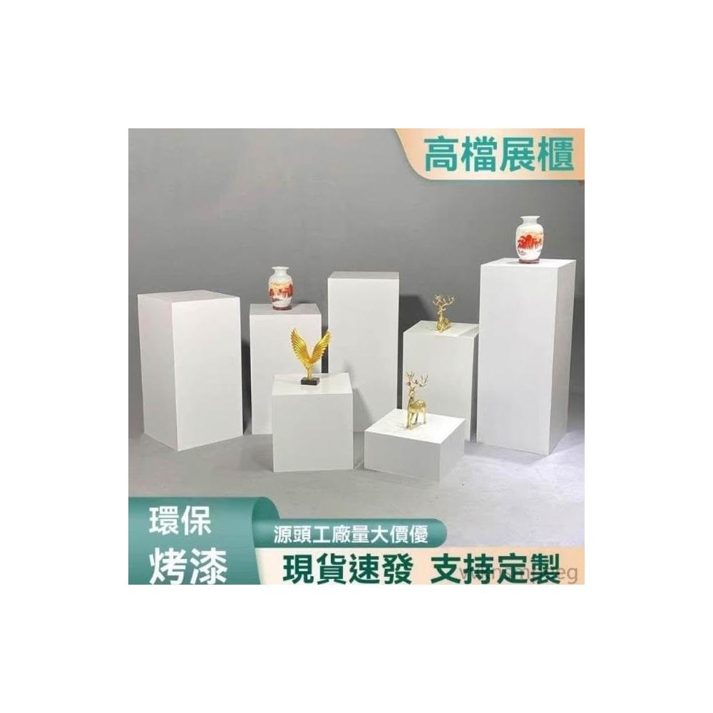 定製木質烤漆地台黑色展台展示台模特直播站台展覽展會道具展示櫃 方形白色立柱 商業陳列展櫃 櫥窗地台產品展架