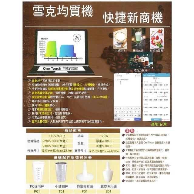 伴桌|鋐潤 Caffe Hermhest 第三代 專業智能APP雪克均質機 附專用PC杯*2( 雪克機/奶泡機/漩茶機)