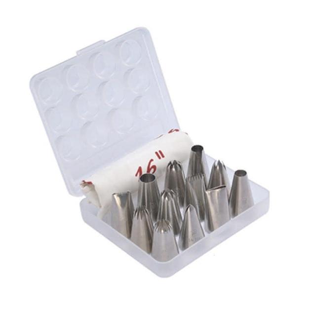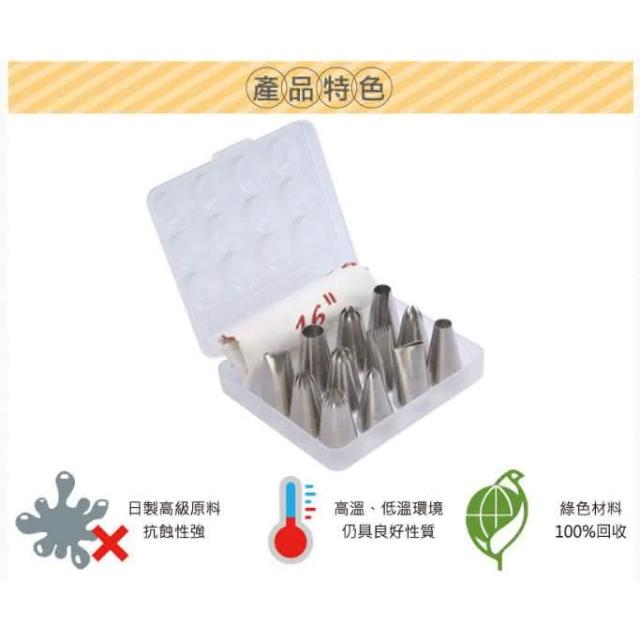 SANNENG 三能伴桌|三能 SN7014 不鏽鋼花嘴 12粒裝 (附擠花袋) 擠花嘴 裱花嘴