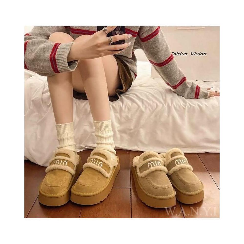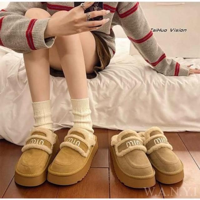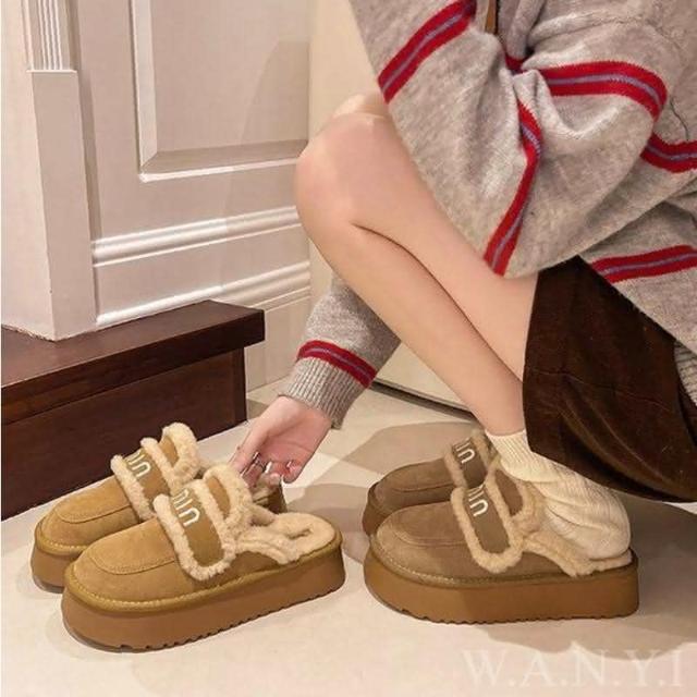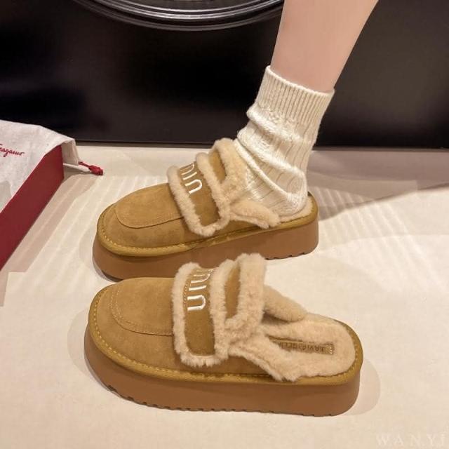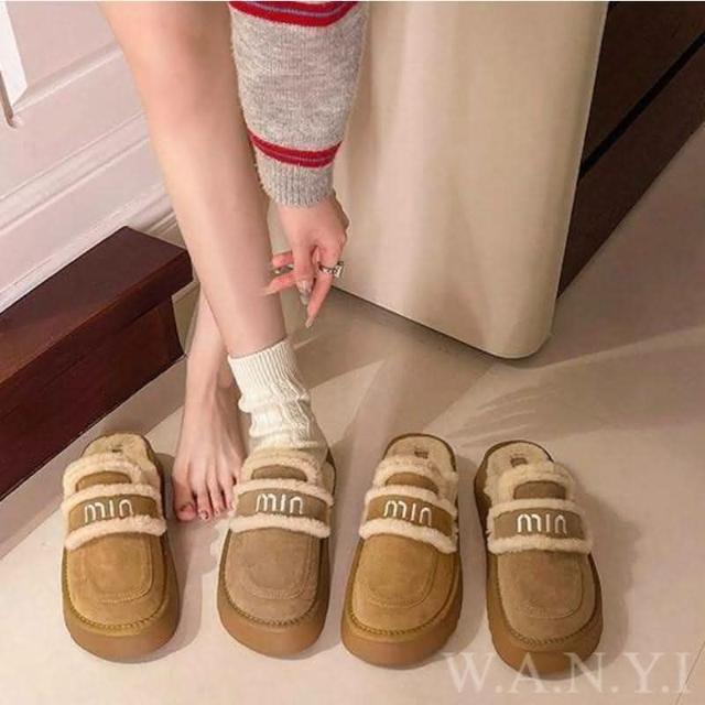 𝐖𝐀𝐍𝐘𝐈 ⧓新款厚底毛毛拖鞋包頭半拖鞋加絨加厚棉拖鞋女鞋