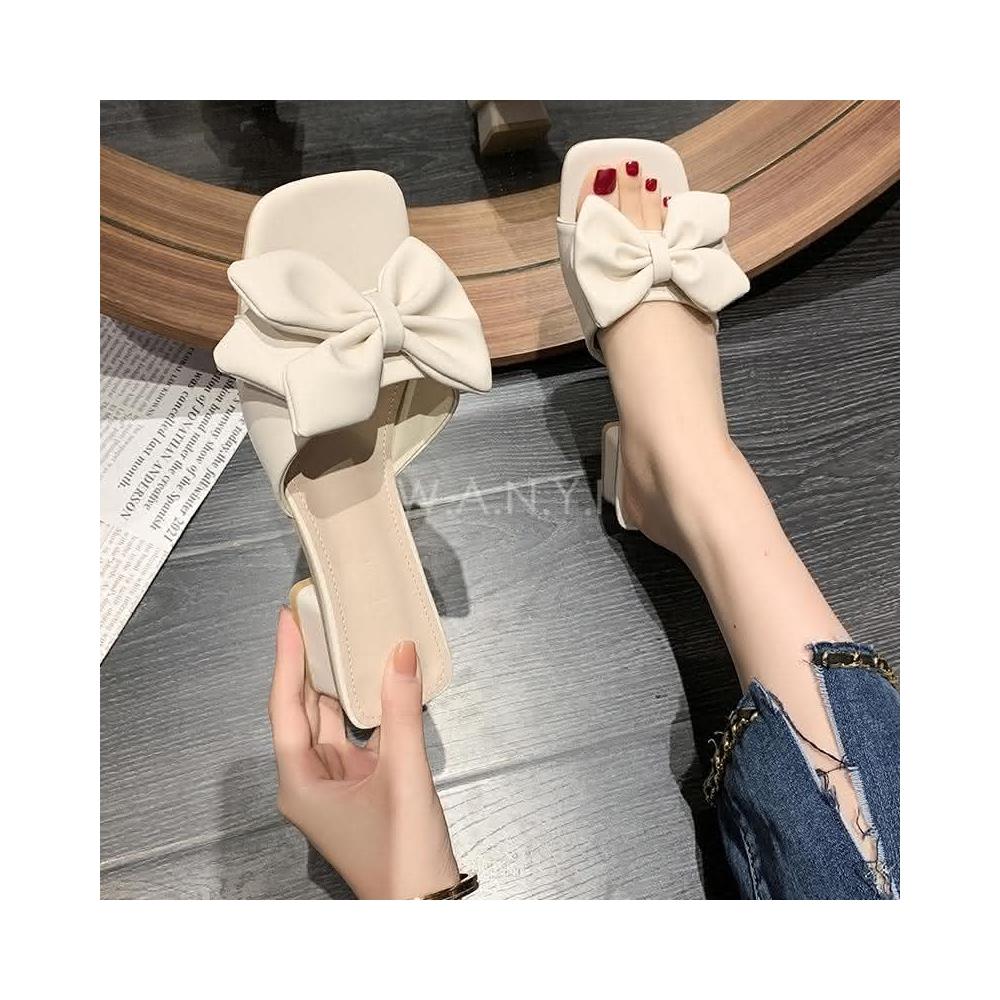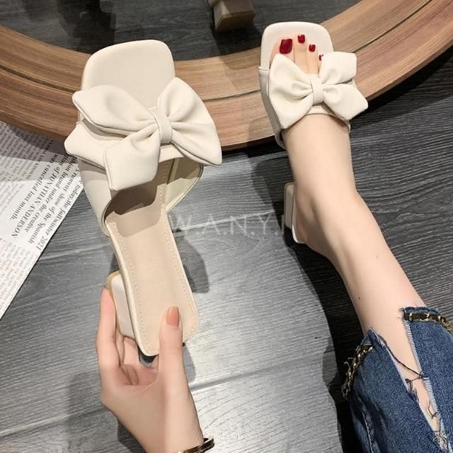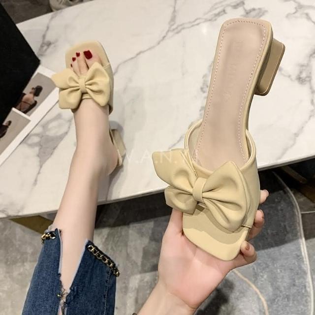 𝐖𝐀𝐍𝐘𝐈 ⧓蝴蝶結 一字粗跟半拖跟鞋推薦款 質感