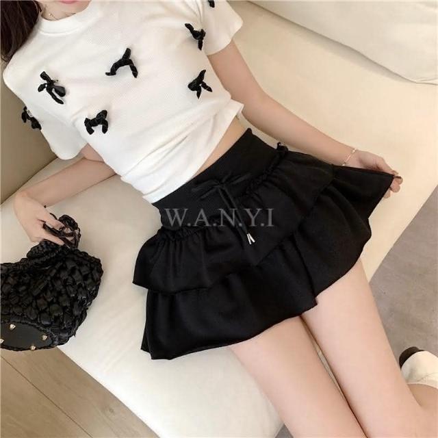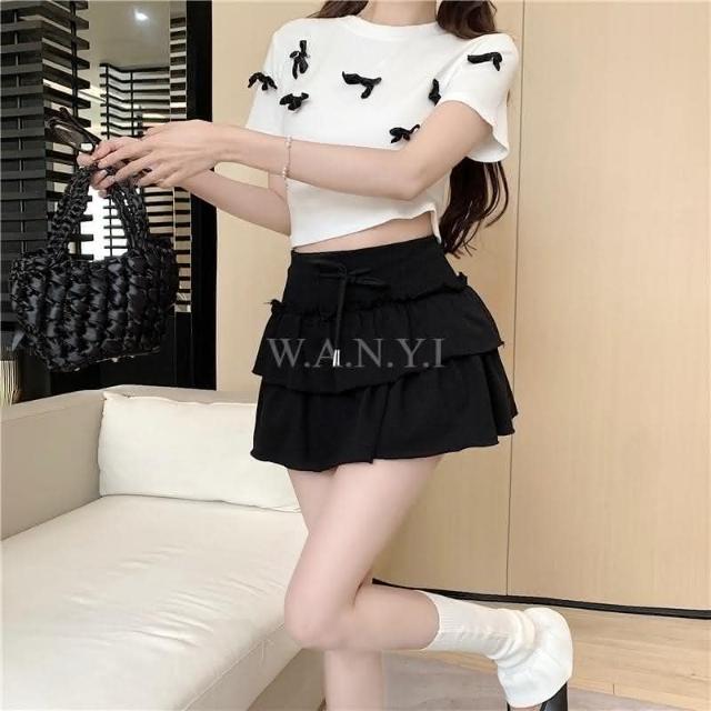 𝐖𝐀𝐍𝐘𝐈⧓ 夏季 芭蕾風蛋糕半身褲裙+蝴蝶結T恤上衣套裝