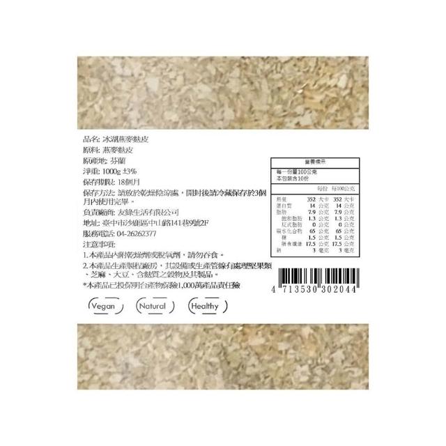 超取限四包 友綠生活 冰湖燕麥麩皮 1公斤x1包 3包組