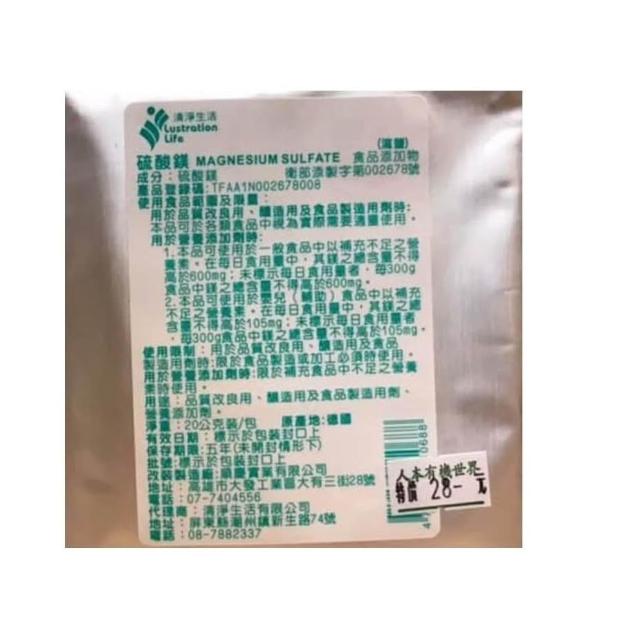 5包組清淨生活 硫酸鎂/瀉鹽 20gx1包(通過衛生福利部食品添加物檢驗合格)