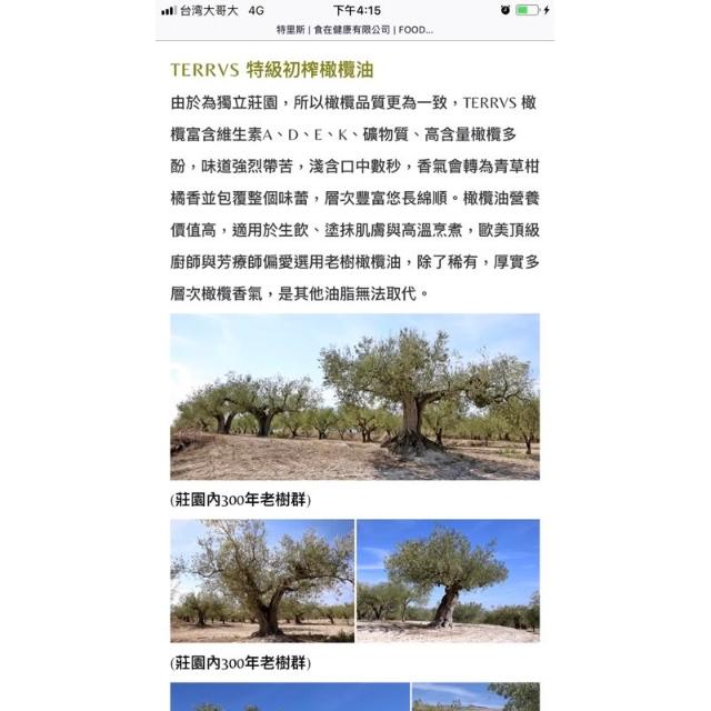 TERRVS特里斯 特級初榨橄欖油 500mlx1瓶(100%純油脂、無過濾,不含任何添加物及抗氧化劑)
