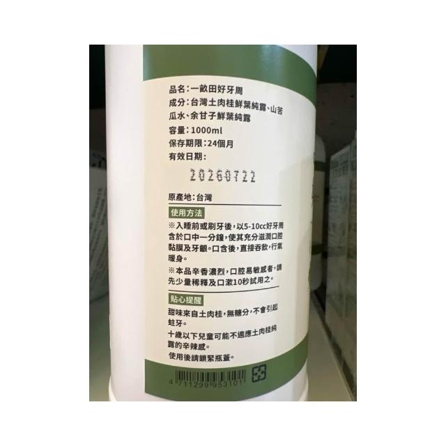 一畝田 好牙周1000mlx1瓶(一分鐘護一口好牙 100%本草 友善栽培)