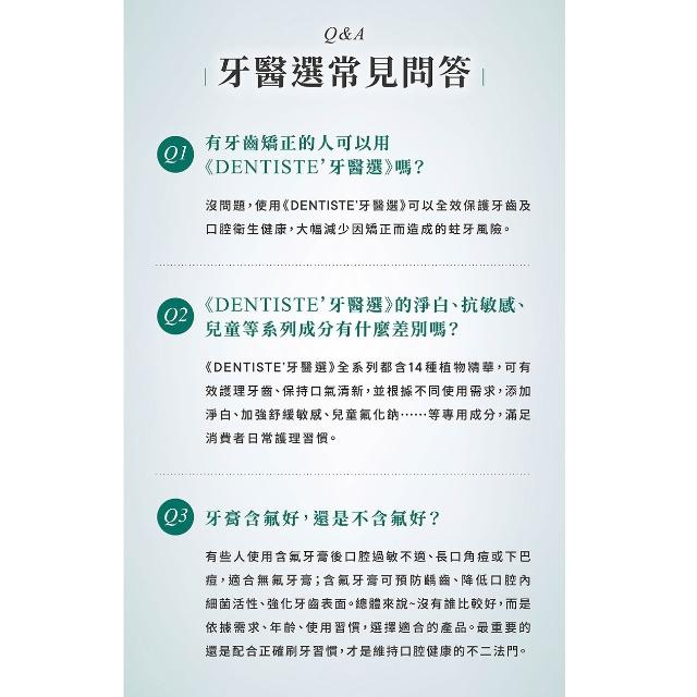 DENTISTEʼ 牙醫選 天然淨白優質牙膏 120gx1條 不含氟 14種天然植物萃取精華
