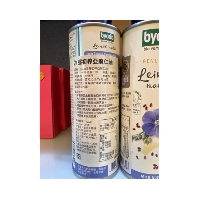 Byodo冷壓初榨亞麻仁油 250ml*3瓶 套組 歐盟黃金亞麻籽 堅果清香 天然Omega-3,素食魚油