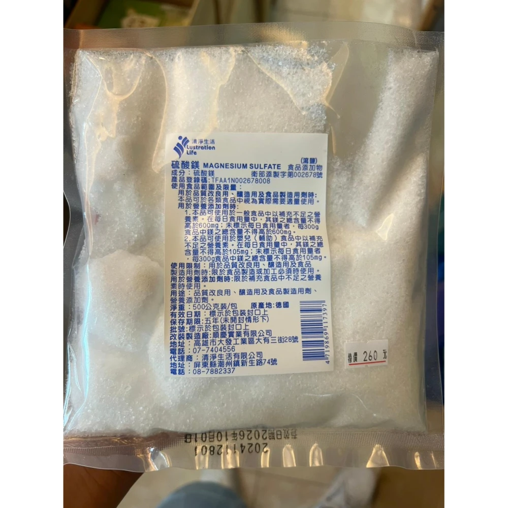 清淨生活 硫酸鎂食品添加物/鎂鹽/瀉鹽 500gx1包
