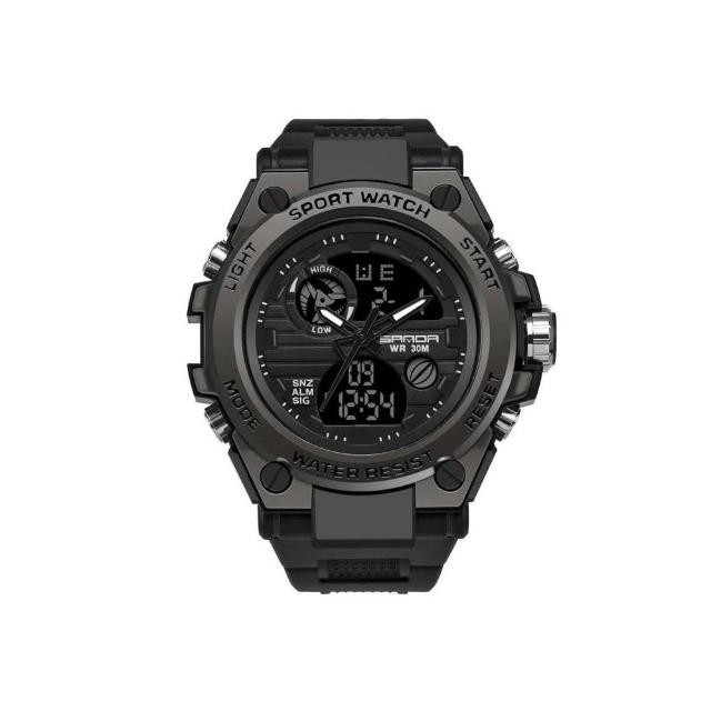 SANDA台灣現貨[江心獨具]SANDA 三達戶外運動雙顯機芯多功能電子錶 潮男夜光男手錶 防水手錶 男錶 石英錶 雙顯錶