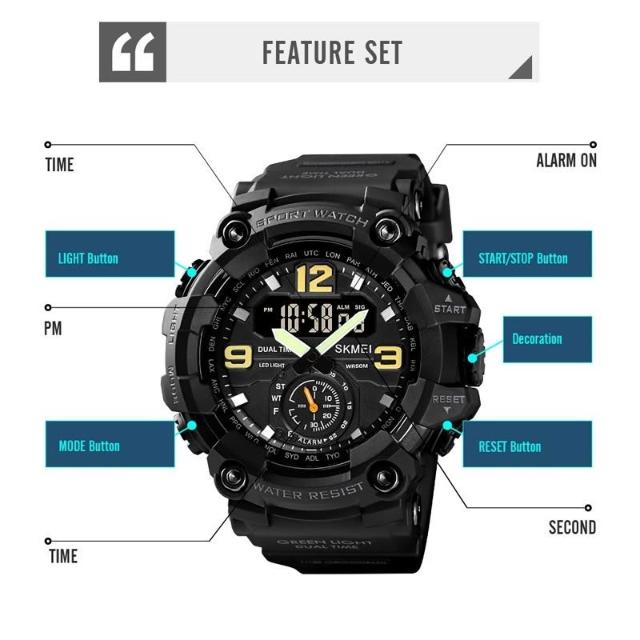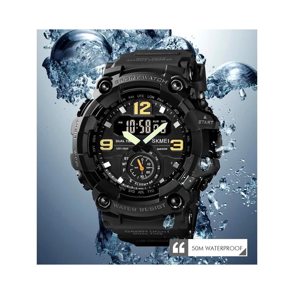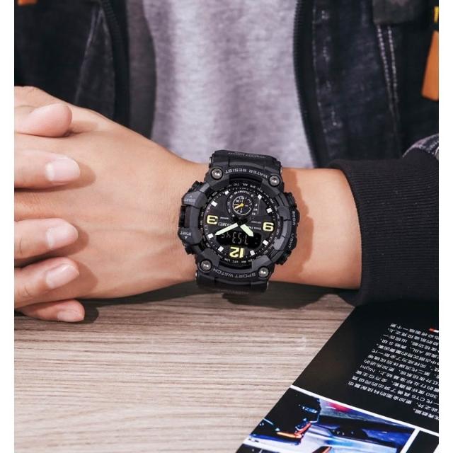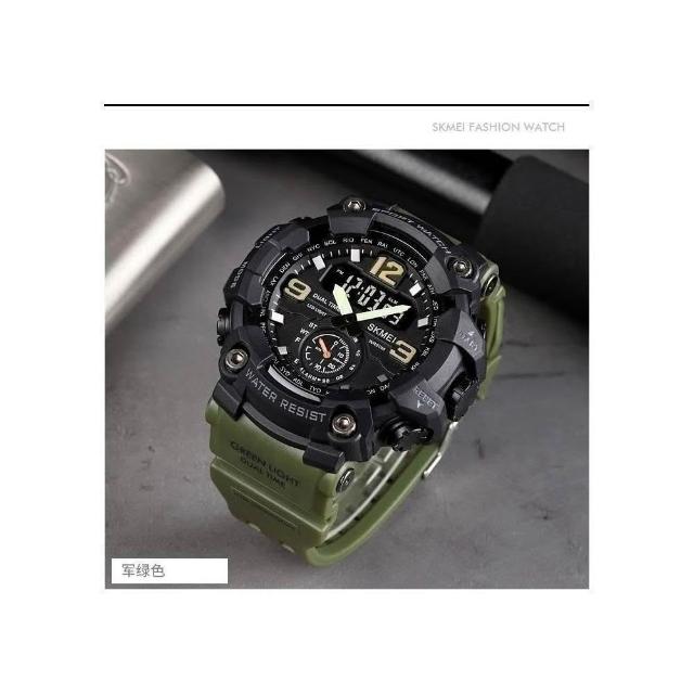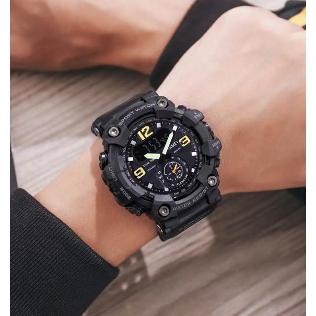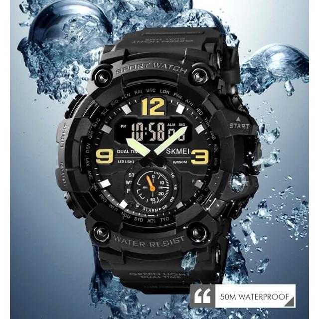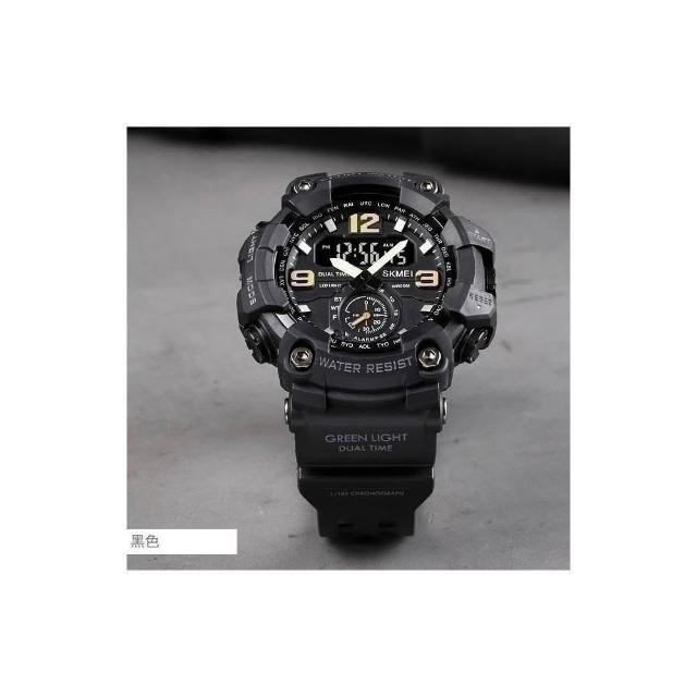 SKMEI 時刻美台灣現貨[江心獨具選品錶店 ]運動減震男士 電子手錶3Time Date Week 雙顯示屏LED燈數字大錶盤手錶