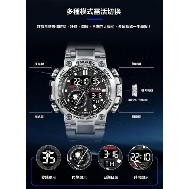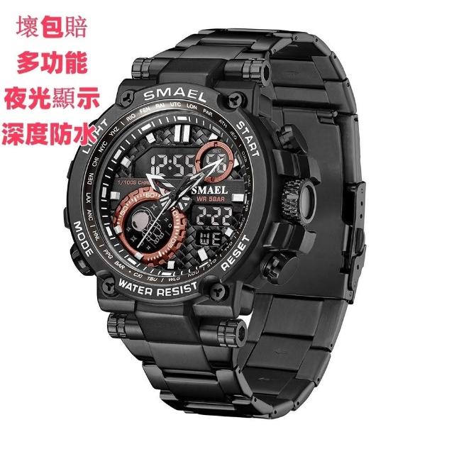SMAEL斯麥爾正品戰術手錶 鋼帶夜光男士手表多功能防水鬧鐘學生電子手表男錶 男手錶