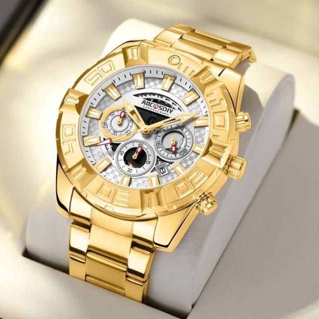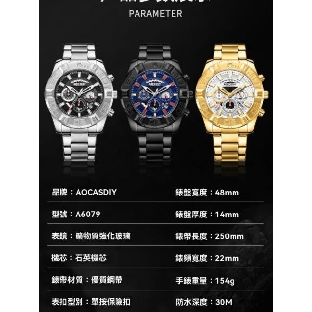 男表 石英錶 AOCASDIY奧卡西迪潮流多功能大表盤男士不銹鋼帶防水石英手表