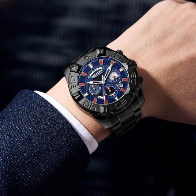 男表 石英錶 AOCASDIY奧卡西迪潮流多功能大表盤男士不銹鋼帶防水石英手表