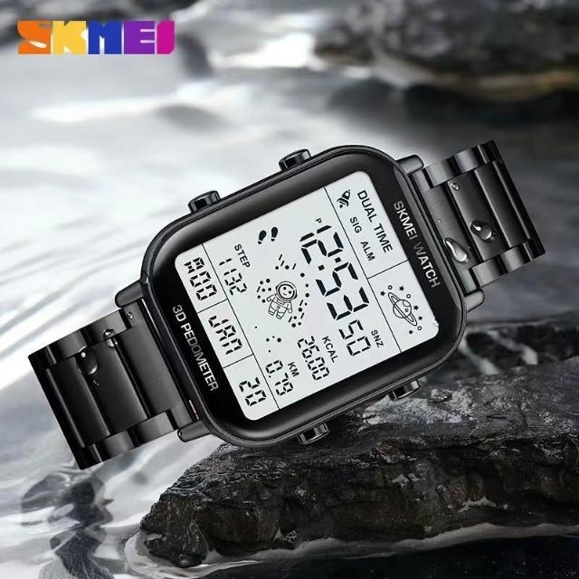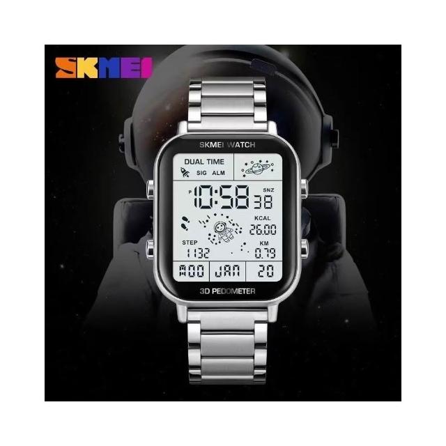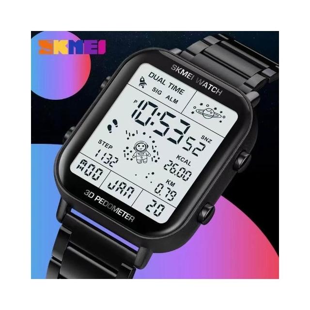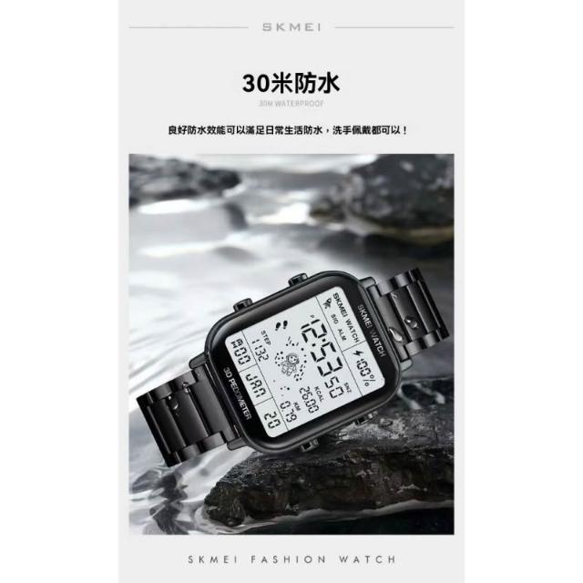 SKMEI 時刻美江心獨具選品錶店[台灣現貨]SKMEI時刻美男士手錶鋼帶多功能商務運動防水電子錶 計步器夜光腕錶 男錶