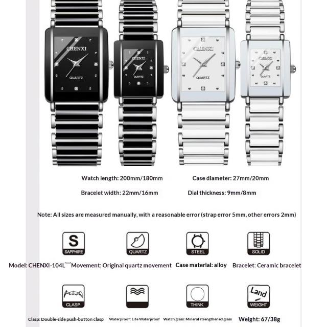 台灣現貨[江心獨具]CHENXI晨曦爆款情侶對錶 時尚陶瓷女士手錶 男士手錶 情侶手錶 方形男女錶 石英錶 防水手錶