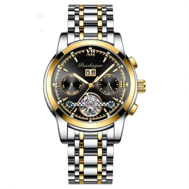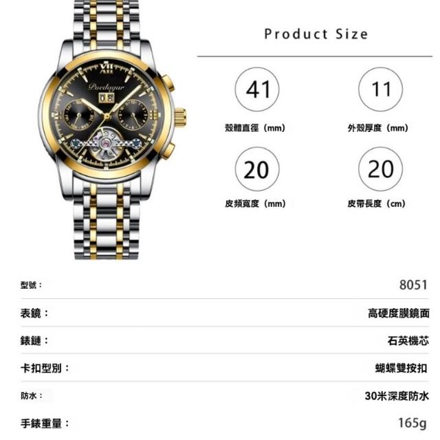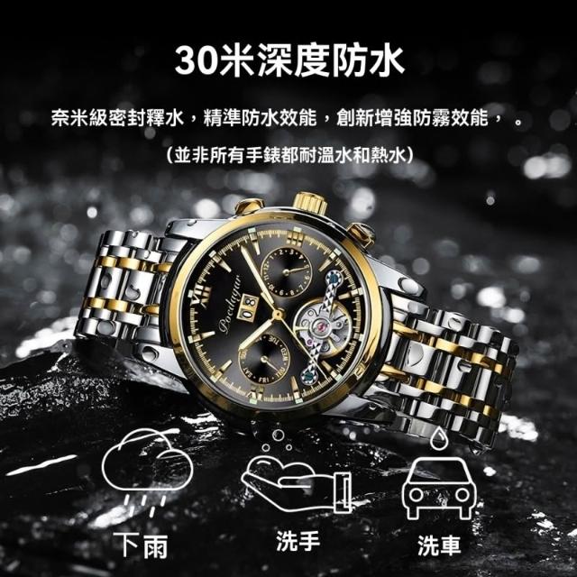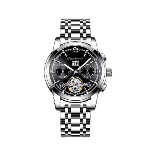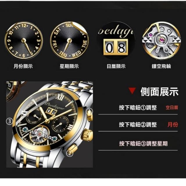 台灣現貨[江心獨具選品錶店 ]POEDAGAR/柏達茄 全自動男士手錶 多功能機械錶 陀飛輪機械手錶 男錶 鋼帶手錶