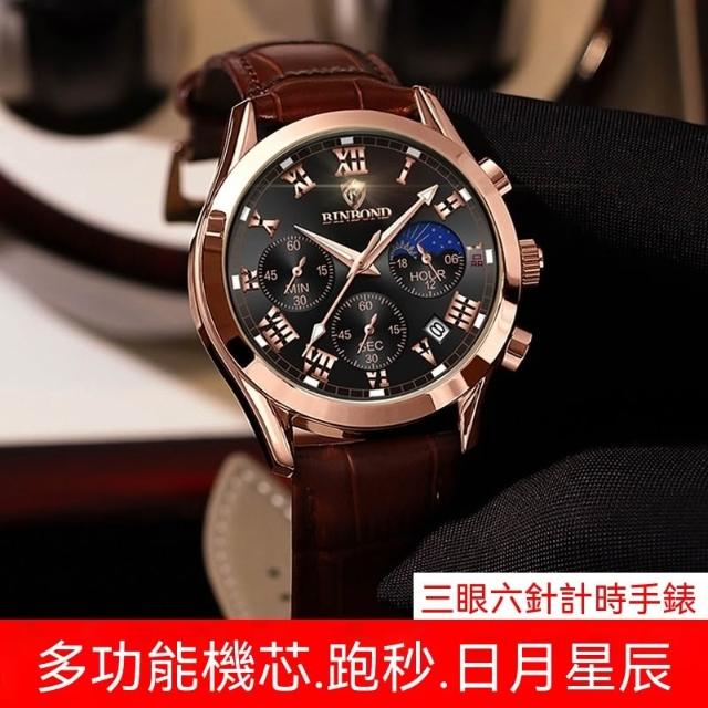 賓邦多功能運動三眼六針計時手錶