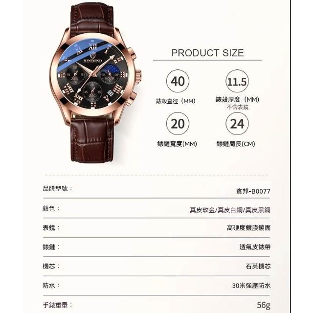 台灣現貨[江心獨具]/賓邦手錶多功能運動三眼六針計時手錶 防水夜光男士手錶 男錶 石英錶 時尚商務手錶 男手錶