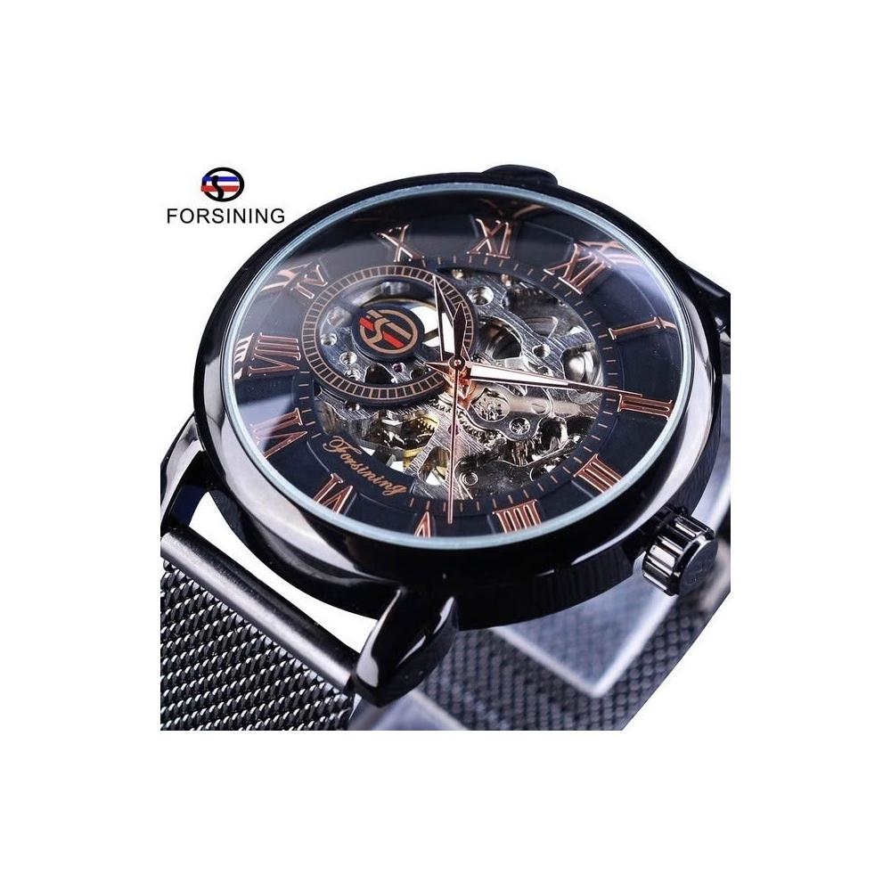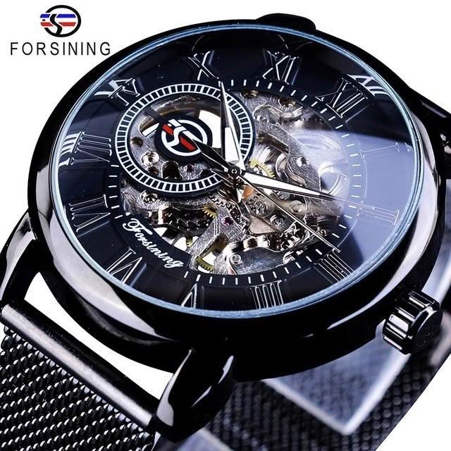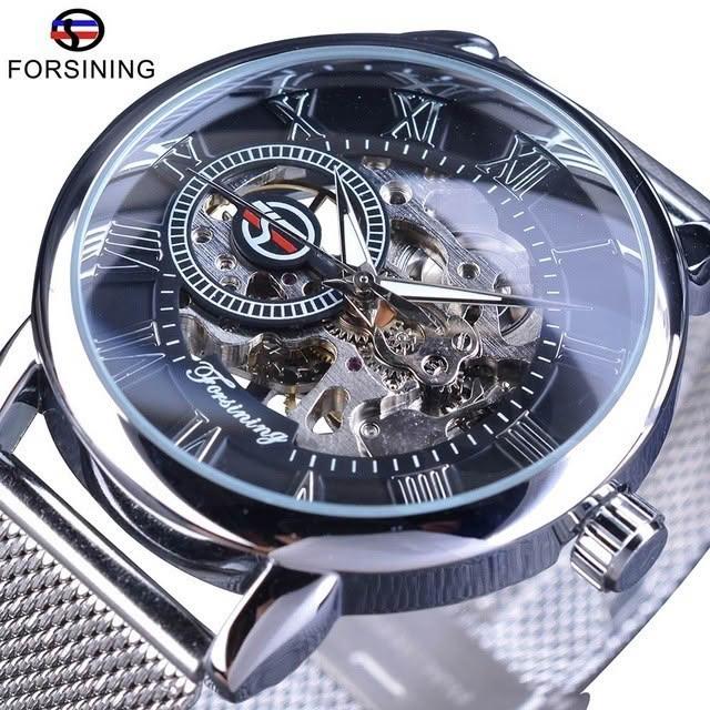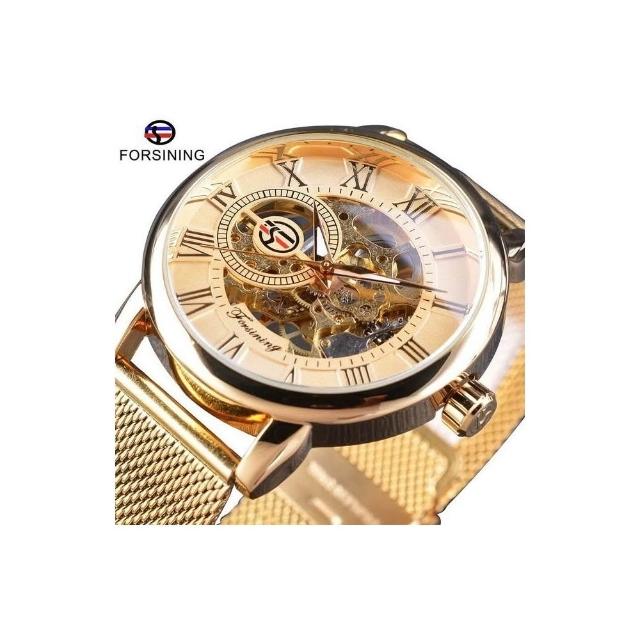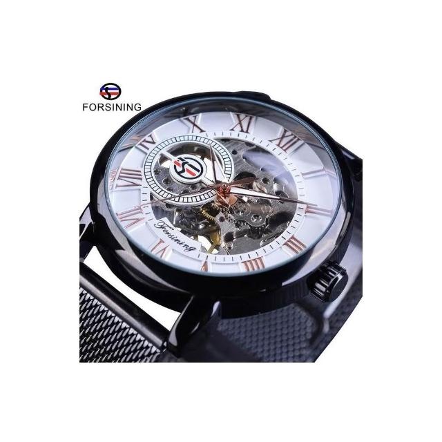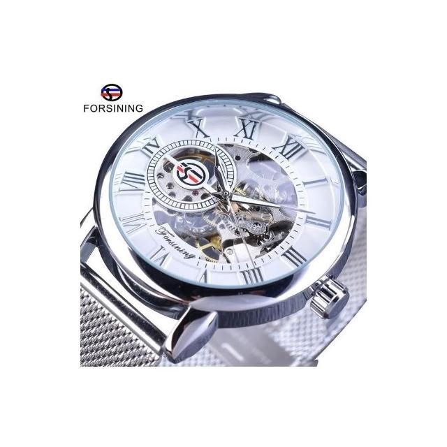 新品 forsining手表男時尚休閑羅馬數字網帶鏤空 自動機械表
