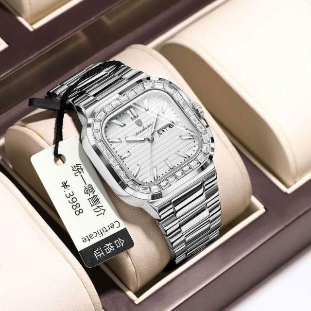 POEDAGAR/柏達茄鑲鉆款男士手錶 新款雙歷時尚石英錶 夜光防水男錶 鋼帶腕錶男