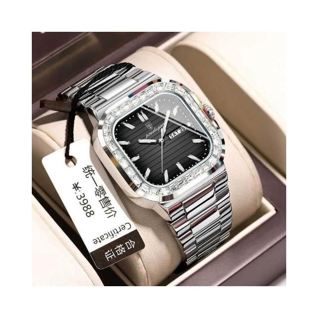 POEDAGAR/柏達茄鑲鉆款男士手錶 新款雙歷時尚石英錶 夜光防水男錶 鋼帶腕錶男