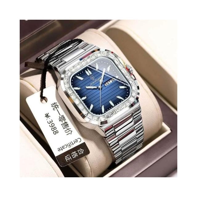 POEDAGAR/柏達茄鑲鉆款男士手錶 新款雙歷時尚石英錶 夜光防水男錶 鋼帶腕錶男