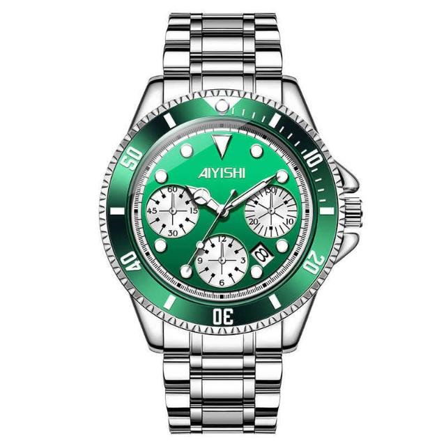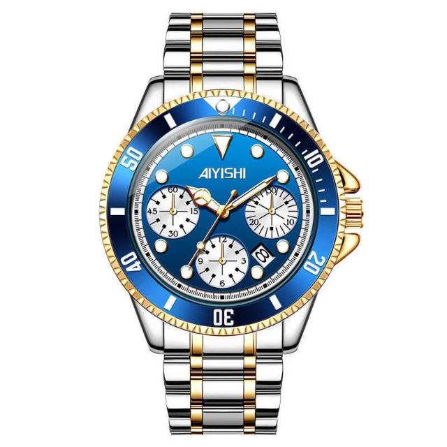 [江心獨具選品錶店 ]AIYISHI愛依士時尚夜光防水日歷手錶 潮流石英鋼帶腕錶 情侶男女同款對錶 情侶手錶