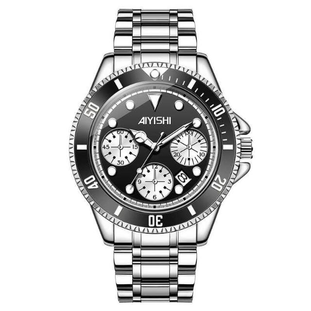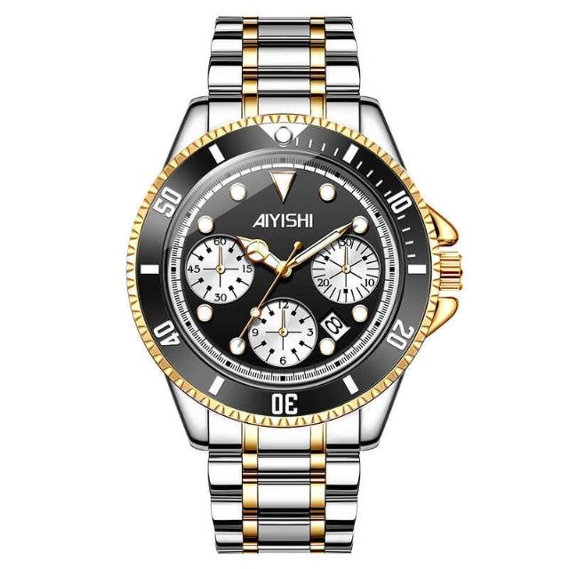 [江心獨具選品錶店 ]AIYISHI愛依士時尚夜光防水日歷手錶 潮流石英鋼帶腕錶 情侶男女同款對錶 情侶手錶