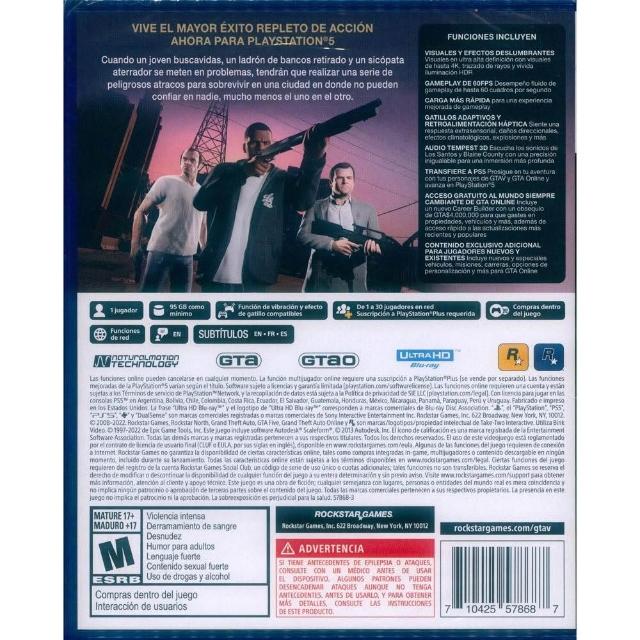 SONY 索尼PS5 俠盜獵車手 5 GTA5 中文版 grand theft auto V