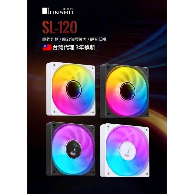 JONSBO 喬思伯SL-120 SL120 ARGB 白色風扇 電腦風扇 正向/反向 PWM/無限光圈/5V同步/九葉刀靜音/大風量