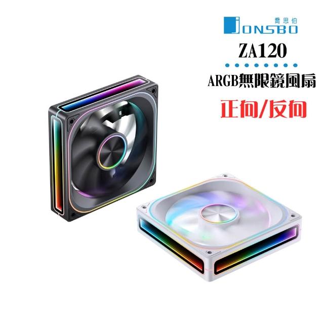 JONSBO 喬思伯ZA120 電腦風扇 ARGB Gen1 一體式全幅無限鏡風扇 黑/白 正向/反向 3年保固/模組化接頭/TH水冷風扇