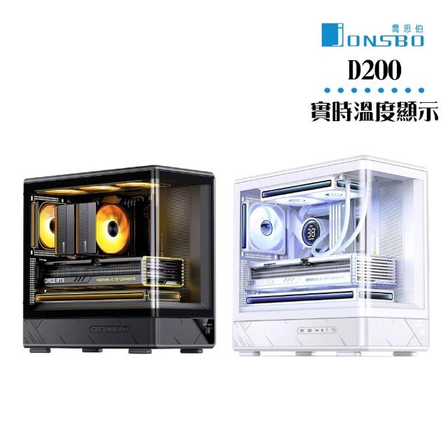 JONSBO 喬思伯D200 電腦機殼 一體式曲面玻璃機殼 黑/白 MATX/數位顯示/快拆/雙艙/7風扇位/可調節顯卡支架 主機殼