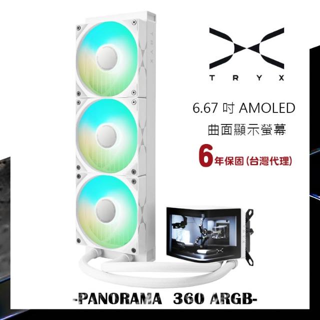 TRYXPANORAMA 360 ARGB 旗艦款白色 一體式水冷風扇 3D液晶曲面螢幕/Asetek 8.5/冷頭VRM風扇