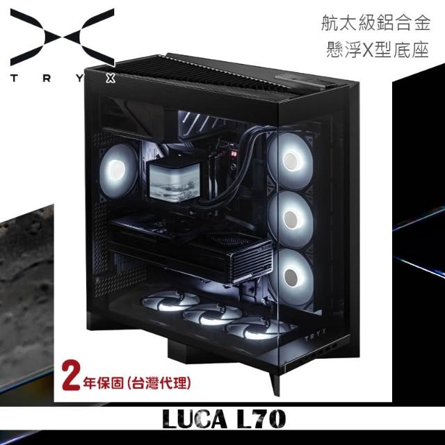 TRYXLUCA L70 黑色 航太級鋁合金 E-ATX海景機殼 懸浮X型底座 背插/雙420 電腦機殼